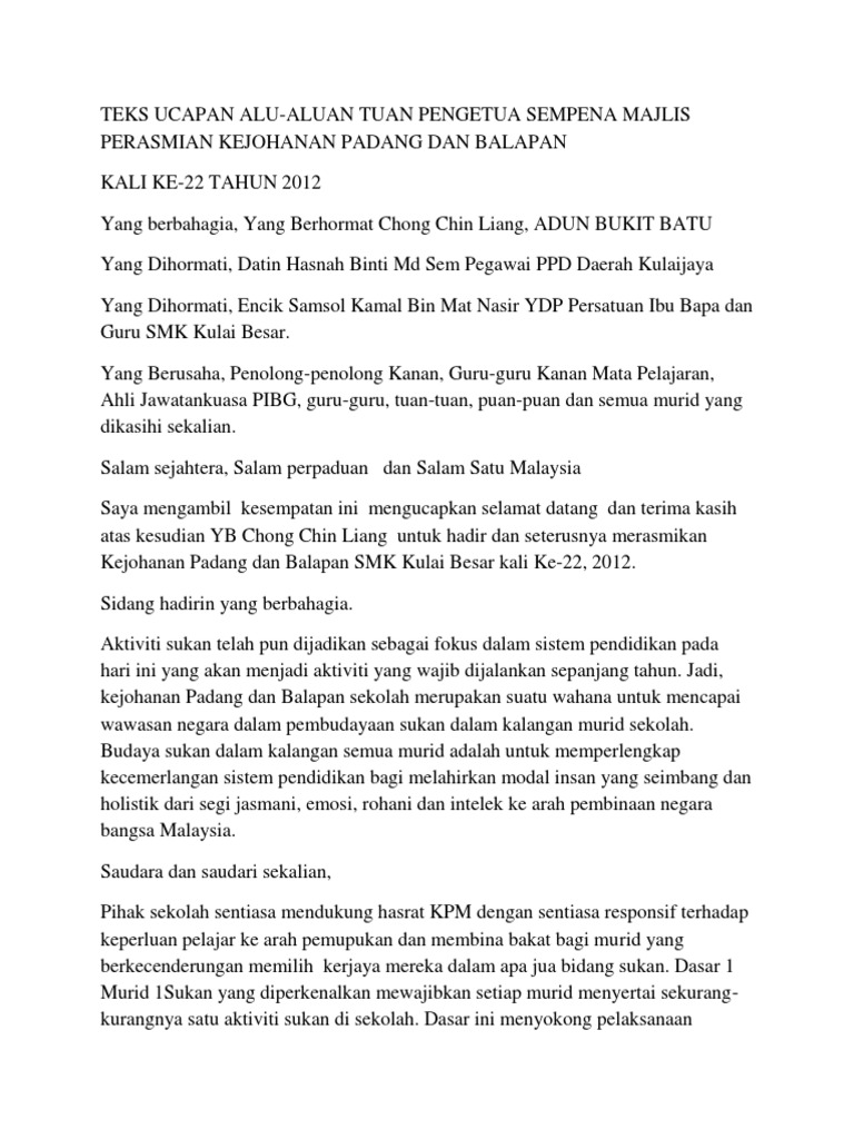 Doc Teks Ucapan Alu Aluan Juwita Abu Samah Academia Edu